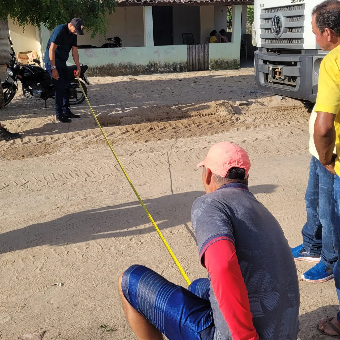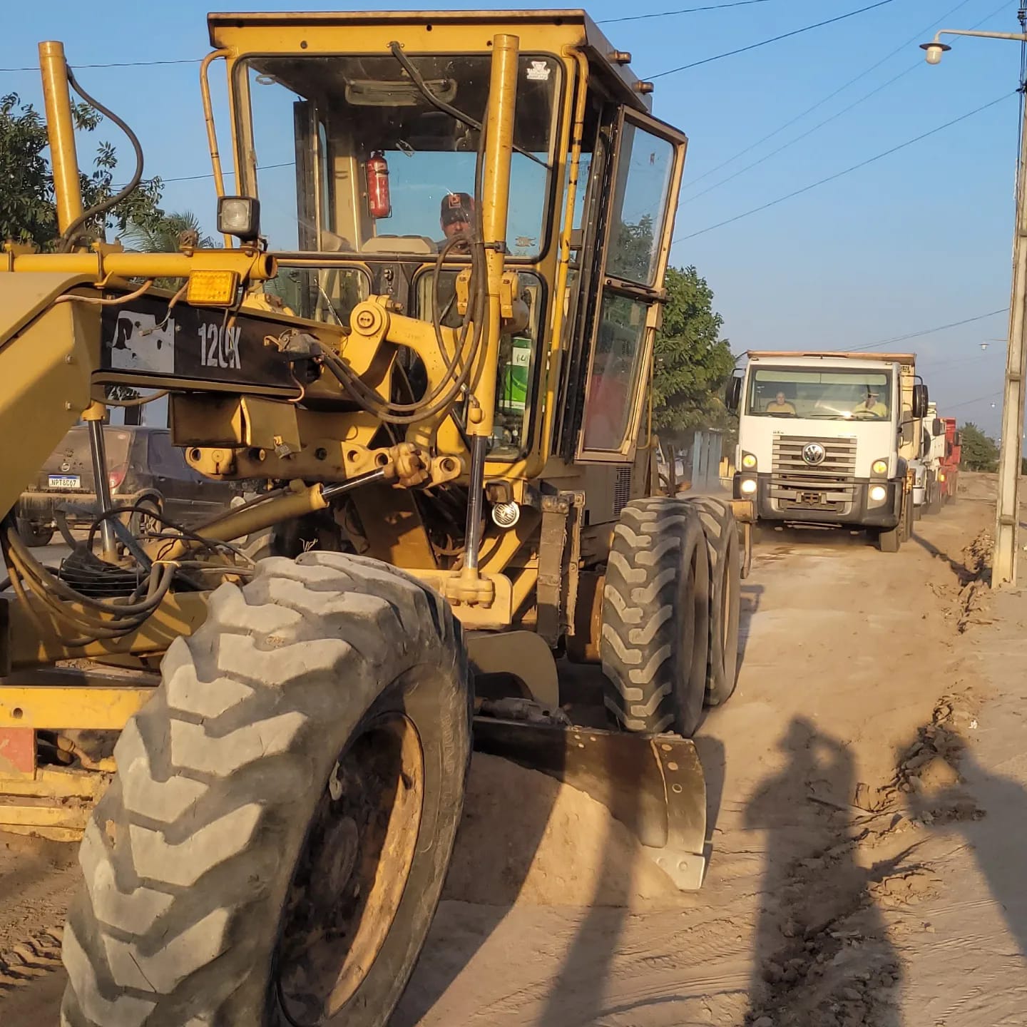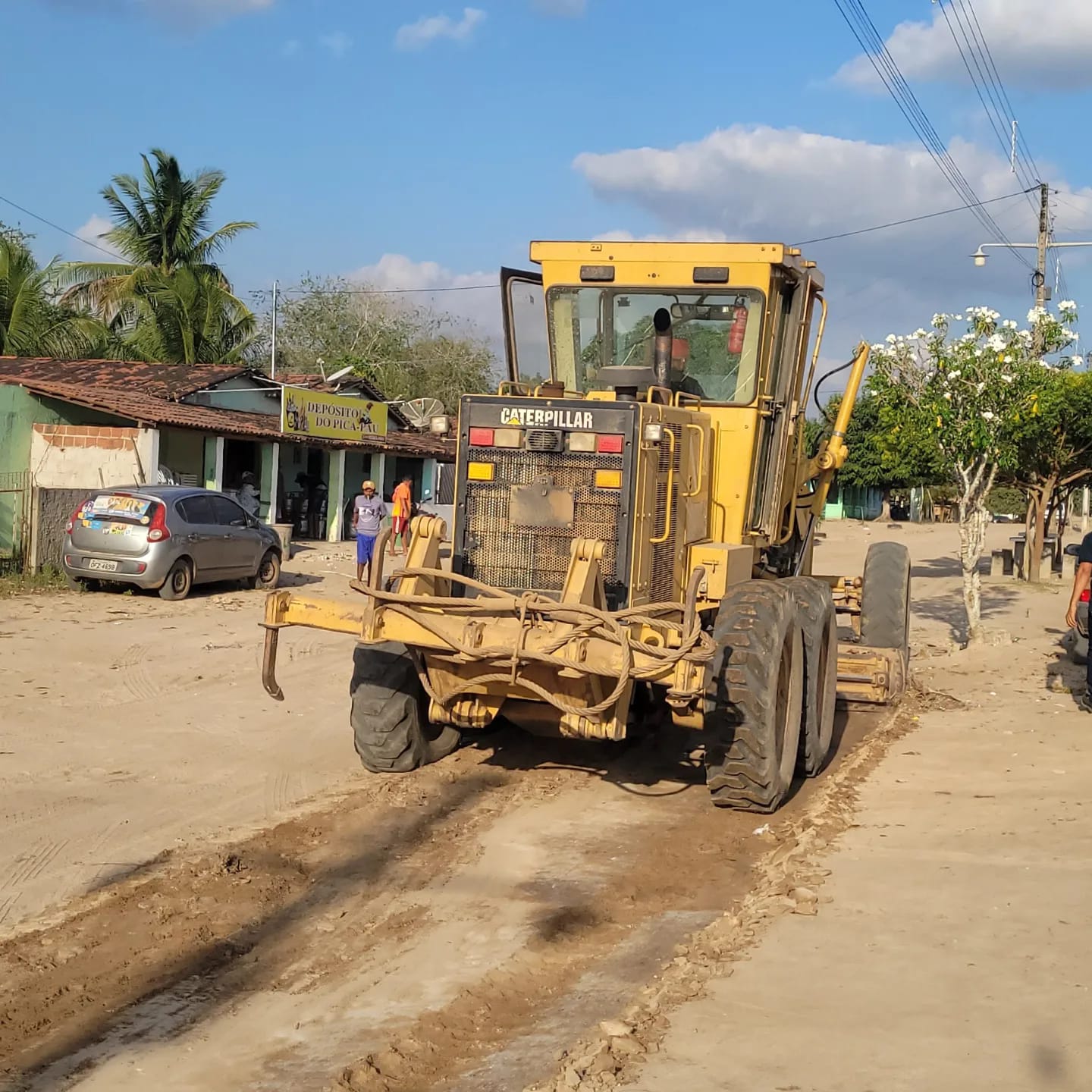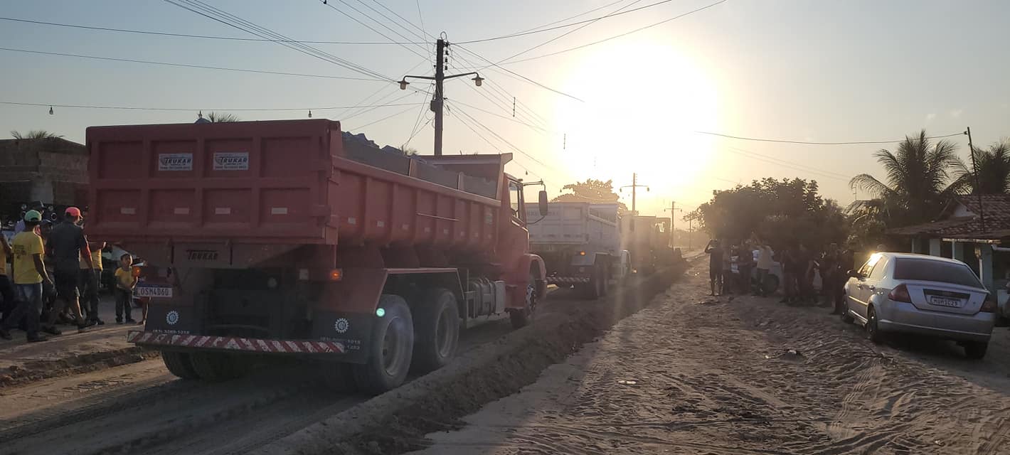 Pouco antes do início da reunião, os serviços foram iniciados com a terraplanagem da rua e com a chegada dos materiais, para que a pavimentação já seja iniciada na próxima segunda-feira (26).